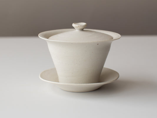 A gaiwan is a “lidded bowl”. As a brewing vessel, the lid is used to strain leaves when decanting a completed brew.