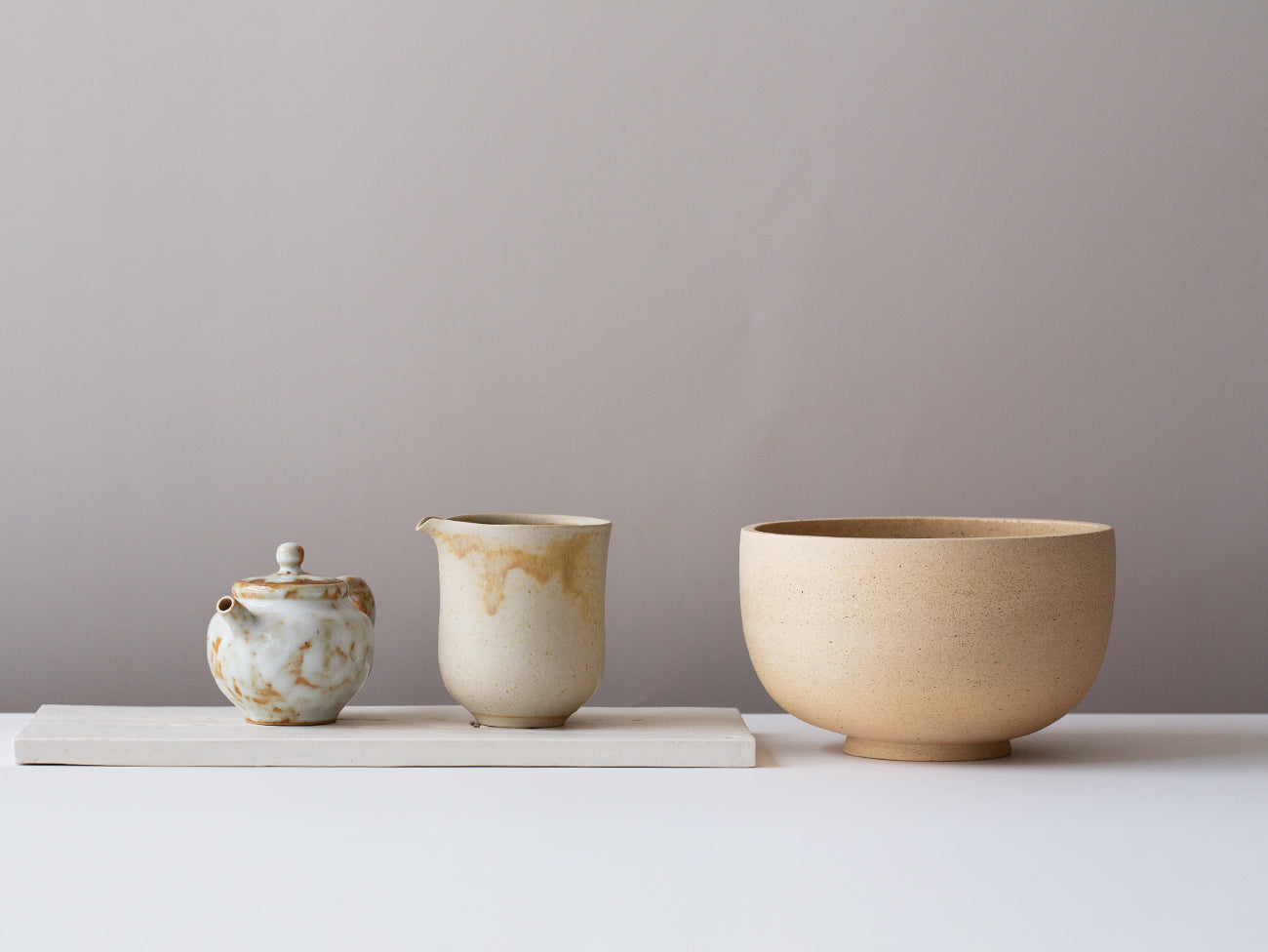 The lines of Miro’s bigger-than-an-udon-bowl bowls are sleek and efficient, an echo of the artist’s previous career in architecture. We’re drawn to this form’s simplicity, particularly when paired with our Wang Wen De tea trays, creating a beautiful, streamlined tea brewing experience.