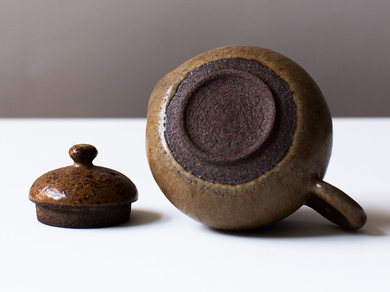 Zhang Hao Yen’s latest collection of tiny teapots are perfectly proportioned for this style of tea making. Thrown from dark stoneware clay, the artist achieves the same qualities of wood fired ceramics on the exterior of this piece by mixing ash into his glaze. You can find evidence of this in the organic striations and subtle iron beauty spots freckling the proud, pear shaped form.