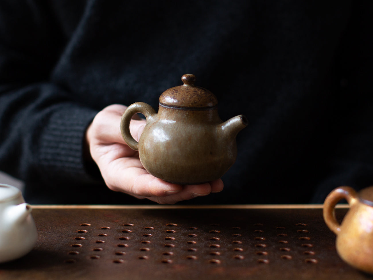 Gong fu, or dry-style tea preparation, is an integral component of the Song Tea service, orchestrated with the smallest brewing vessels. The scale of these teapots allows for highly concentrated brews, highlighting the epitomes of flavor and character through each successive steep. These are pots designed for ritual, intended to be filled again and again with near-boiling water and decanted, shared, and savored.