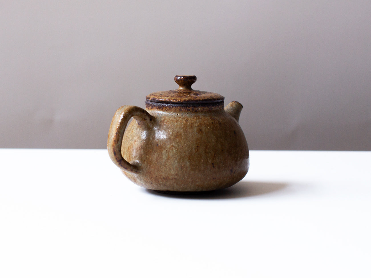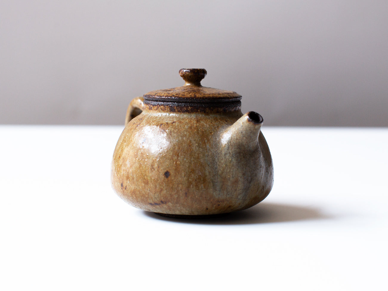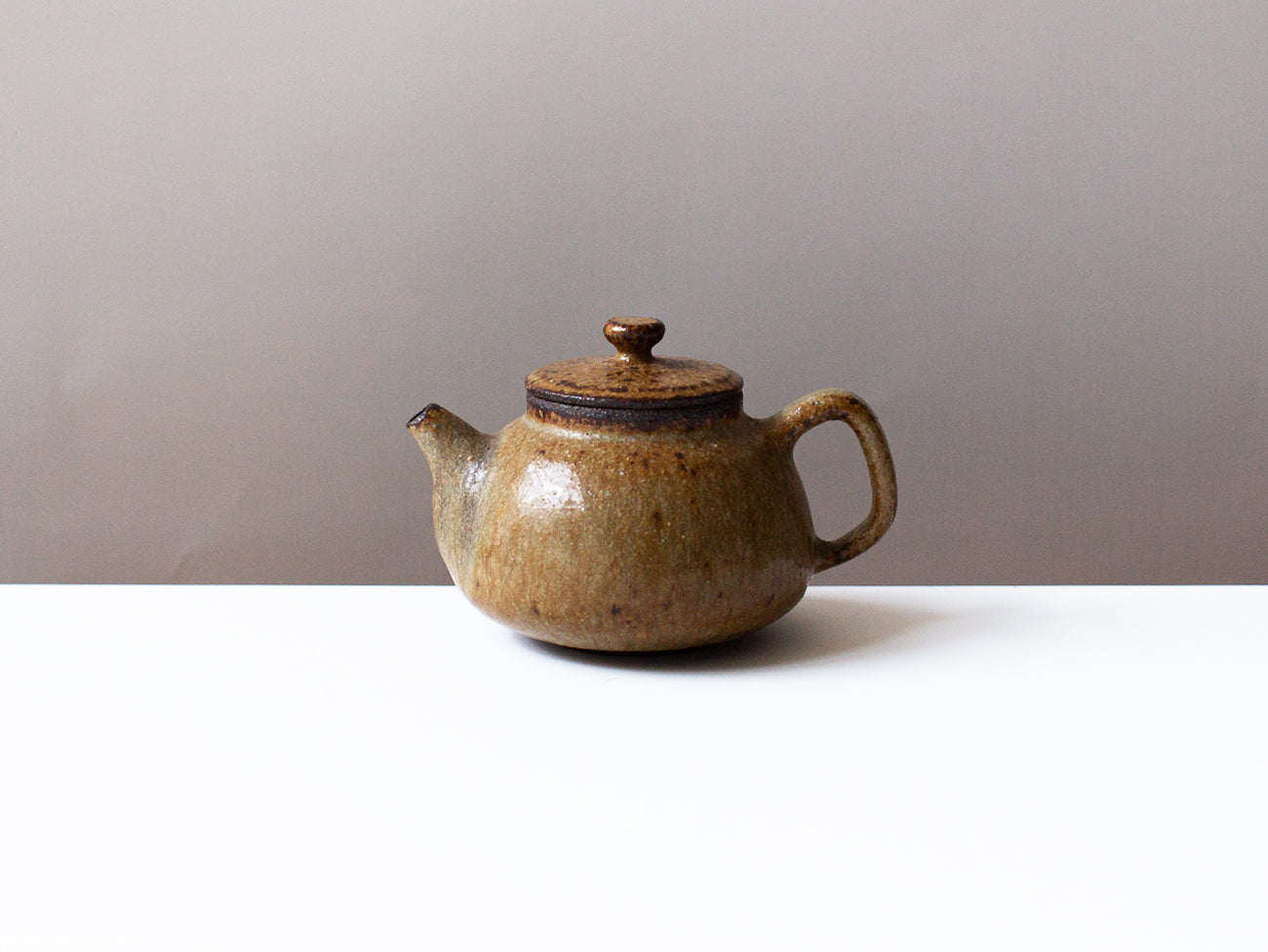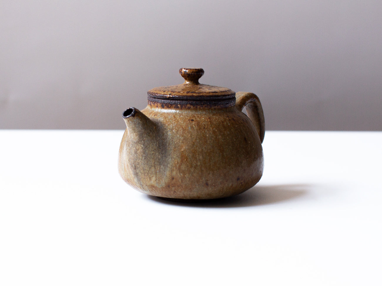 Zhang Hao Yen’s latest collection of tiny teapots are perfectly proportioned for this style of tea making. Thrown from dark stoneware clay, the artist achieves the same qualities of wood fired ceramics on the exterior of this piece by mixing ash into his glaze. You can find evidence of this in the organic striations and iron beauty marked dotting the form, keeping the eye roving across this this classically proportioned pot.
