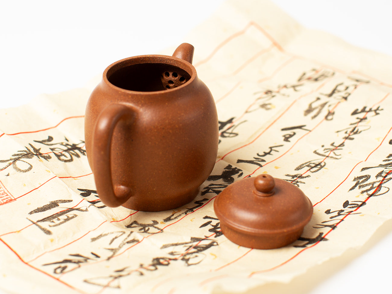 Usage and care: Thoroughly rinse any particles of sand from the interior before use. Dedicate one tea type per pot. Eventually, a tea pot will be seasoned with the particular character of a tea. Hand-wash only without soap or detergent.