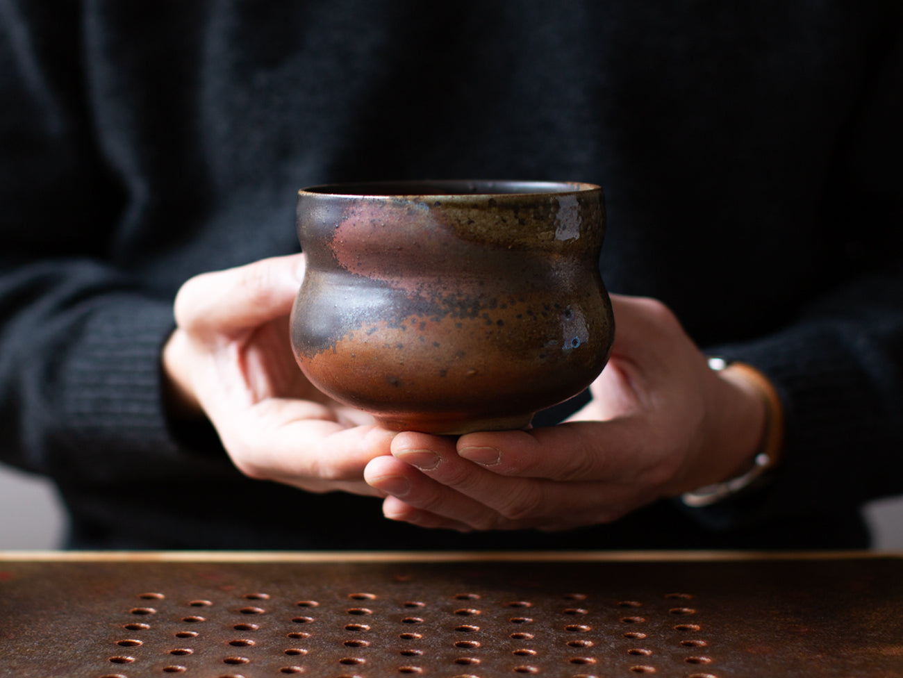 The best tea bowls for this brewing style act like extensions of the hand, vessels intended to be cradled throughout the day. Taiwanese potter, Zhang Hao Yan is a master of this form, each bowl gently curved and sized to hold close. Thrown from dark stoneware and trimmed by hand on the potter’s wheel, the surface is colored in burnt siennas and umbers, the marks of ash and flame on their pathways through the wood-fired kiln. The vessel appears somewhat volcanic in nature, an echo of the natural warmth tea bowl drinking provides.